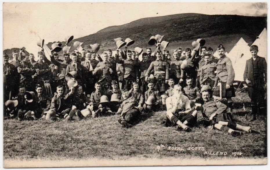 Hillend Camp, Pentlands Sunday 19.7.08-2.8.08. The first camp as a Territorial battalion, they were rather understrength.