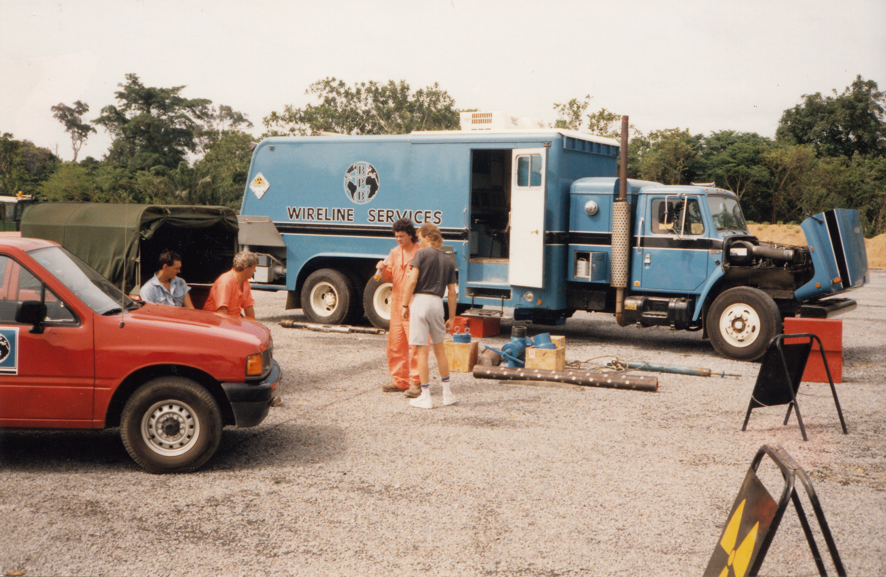 Before BPB Wireline started in 1970, the Geophysics and Nucleonics Department had a Field Van, a Logging Van and a Land Rover used for seismic and Mine Probe work.