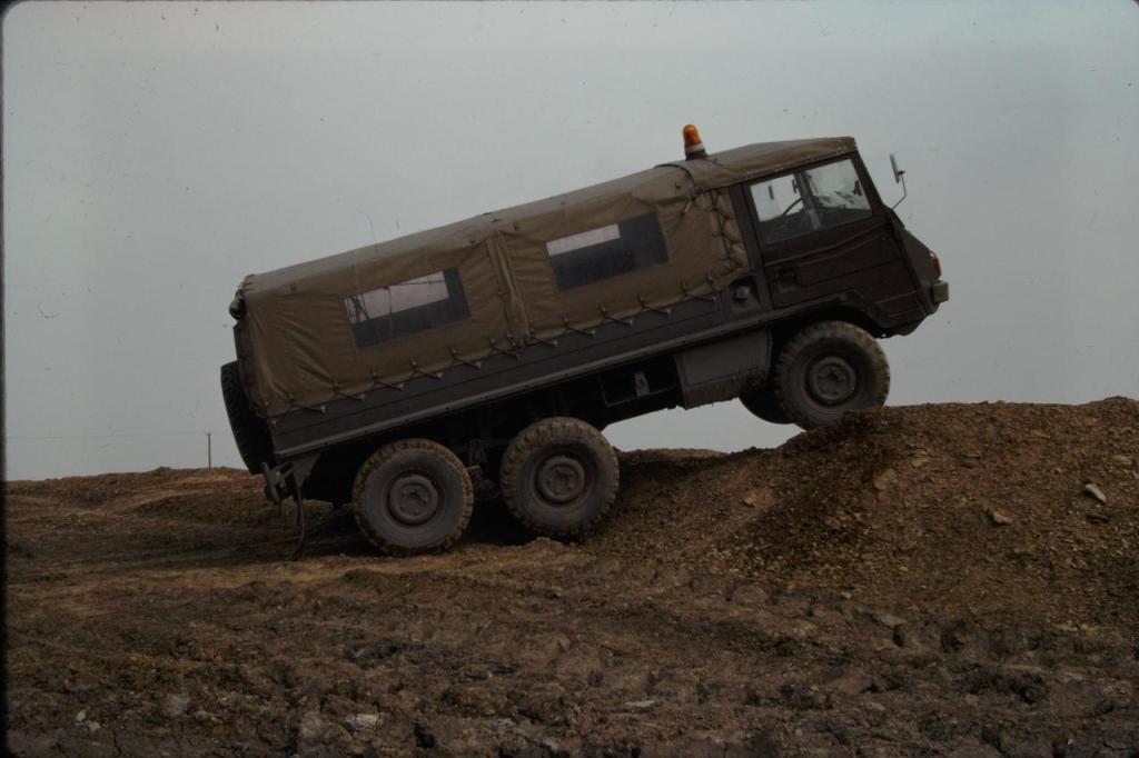 The canvas troop carrier Pinzgauer was a loner/rental from a farmer/engineer and Haflinger agent based just north of Belford near Lindisfarne. The Yorkshire Haflinger at Anglers Opencast lost its gearbox and I took it to Belford to be repaired, I picked up the Pinzgauer and at ELK we strapped a skid based unit in the back and I used it in Yorkshire for a month or so before I headed elsewhere.”